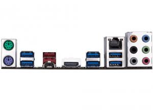 Zezadu má počítač konektory 2x USB 3.1 (1x typ A, 1x typ C), 6x USB 3.0, 2x PS/2, 1x Gbit síť, Jack výstupy pro až 7.1 reproduktory, výstup integrované grafiky (HDMI).